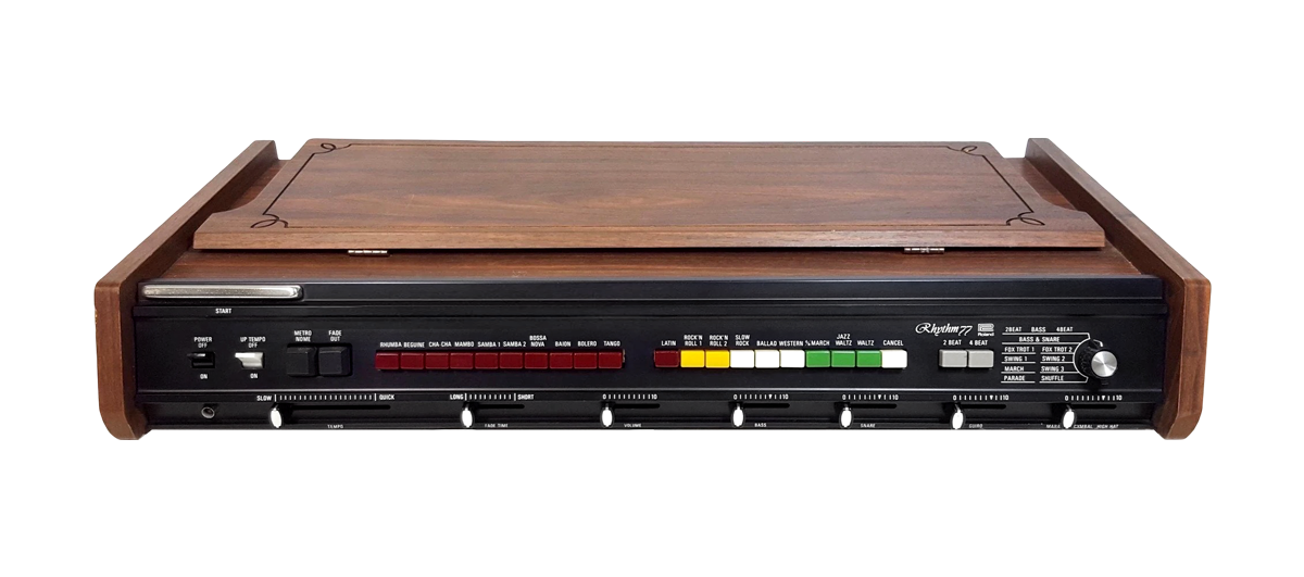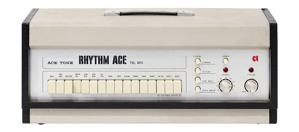 In 1964, Ikutaro Kakehashi gave that experiment a physical form with the Ace Tone R-1 Rhythm Ace. One of the earliest fully transistorized rhythm devices produced domestically, it offered no programmability and stored no patterns. That wasn’t the point. It demonstrated that rhythm could be generated electronically by circuits reliable enough for everyday use, allowing a machine to take on a role that had previously required another person.