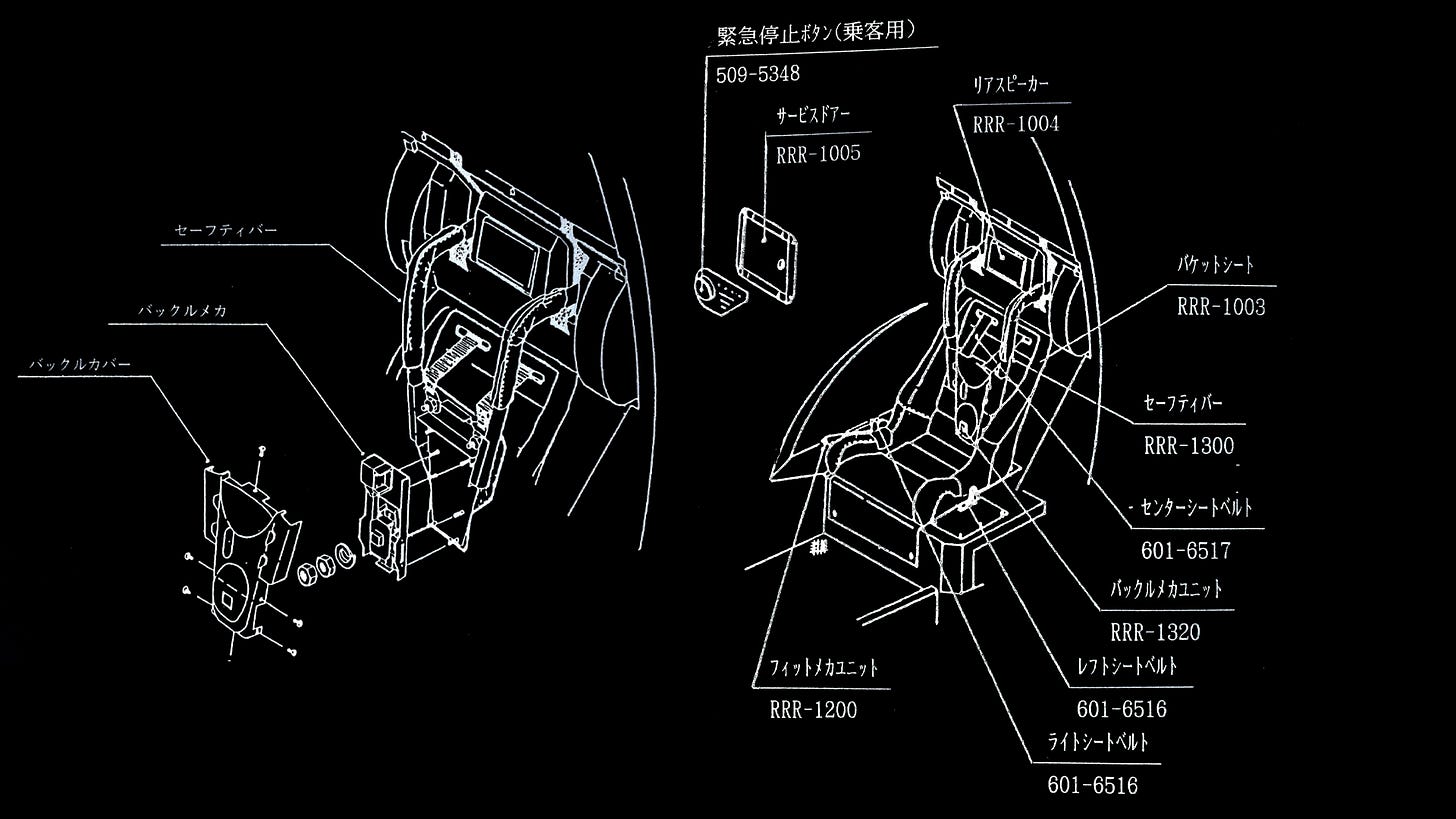 Assembly was equally difficult. The arc was built in sections, and the cockpit was lowered into place by crane before the frame was closed around it. At the Yaguchi plant in Chiba Prefecture, production resembled rail or aircraft assembly more than arcade manufacturing. Even under ideal conditions, Sega could complete only three units per day.